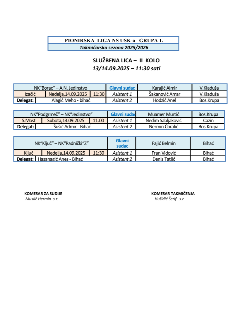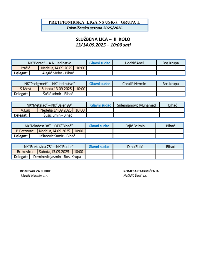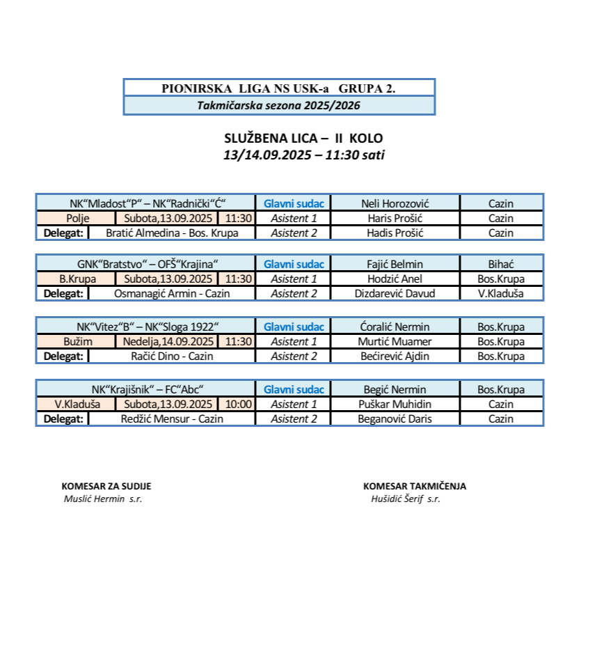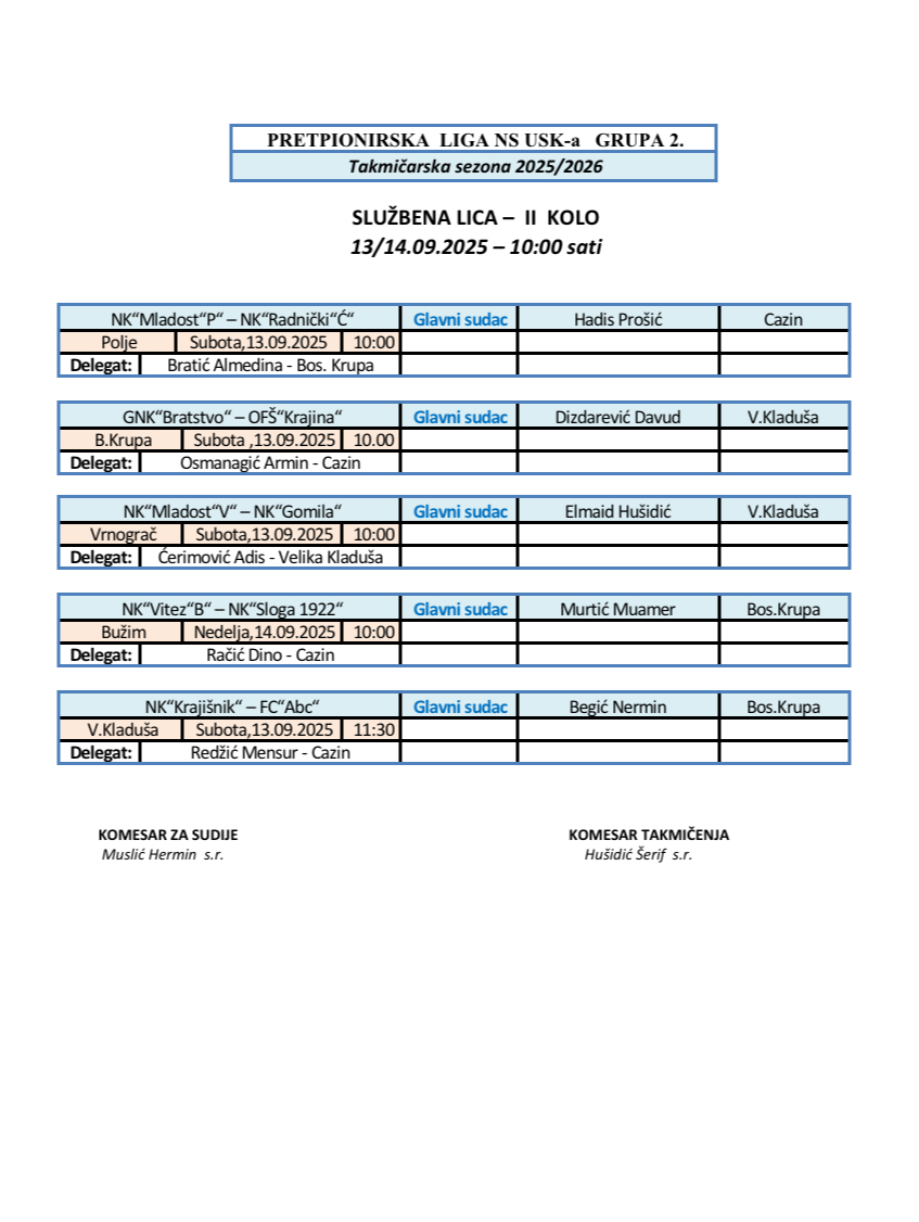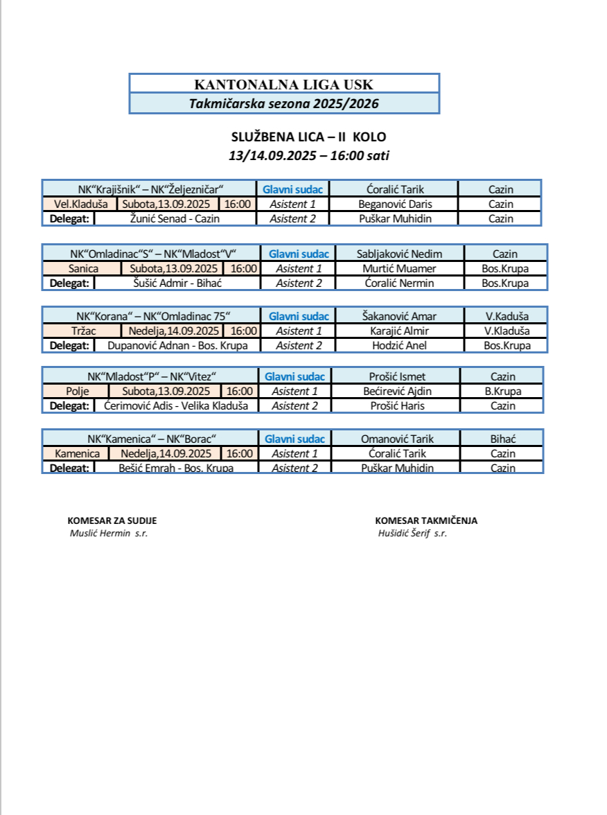 Delegiranje 2.kolo Kantonalna i Omladinska liga