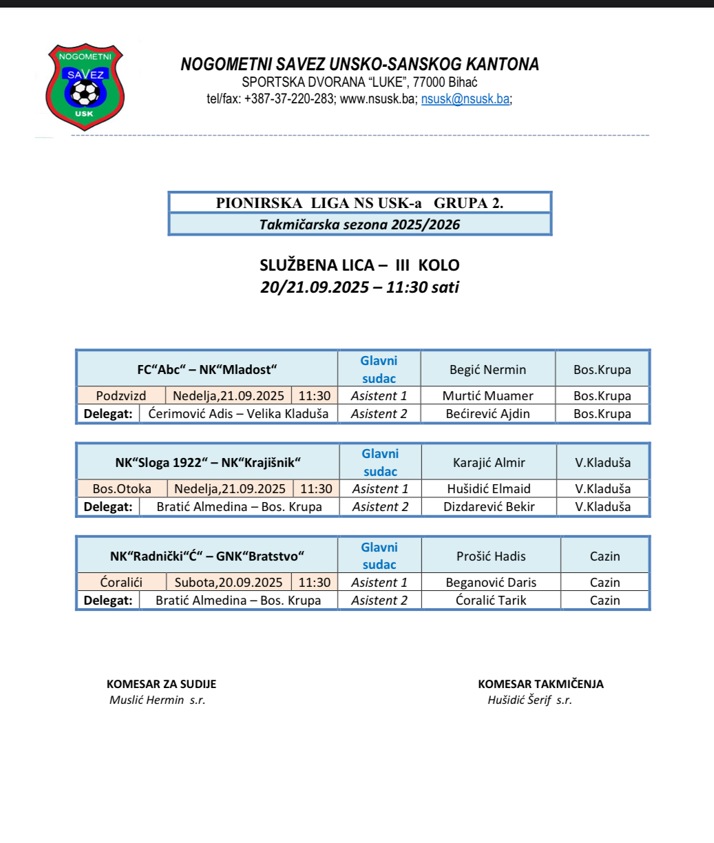 © 2026 Nogometni savez USK. All Rights Reserved