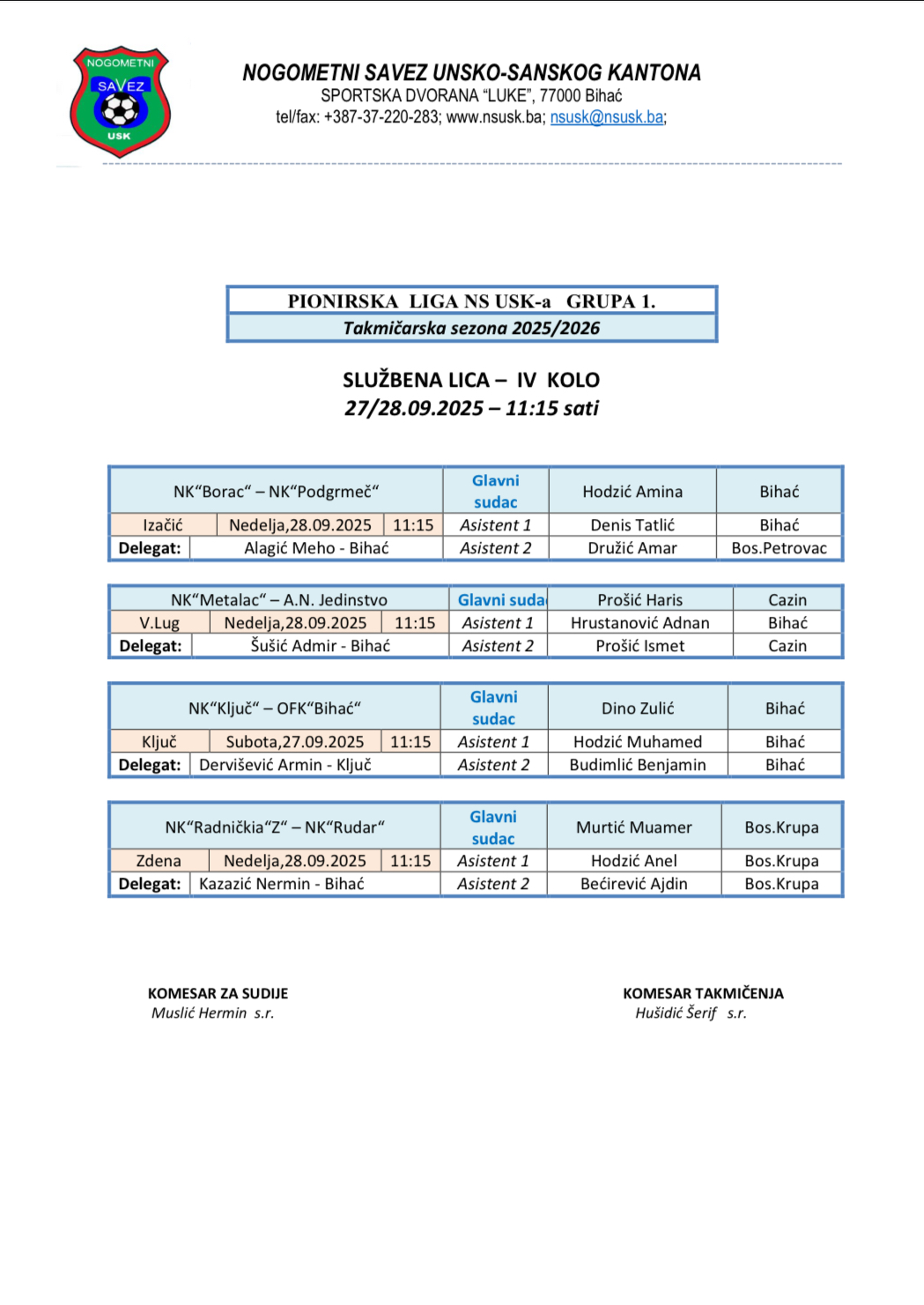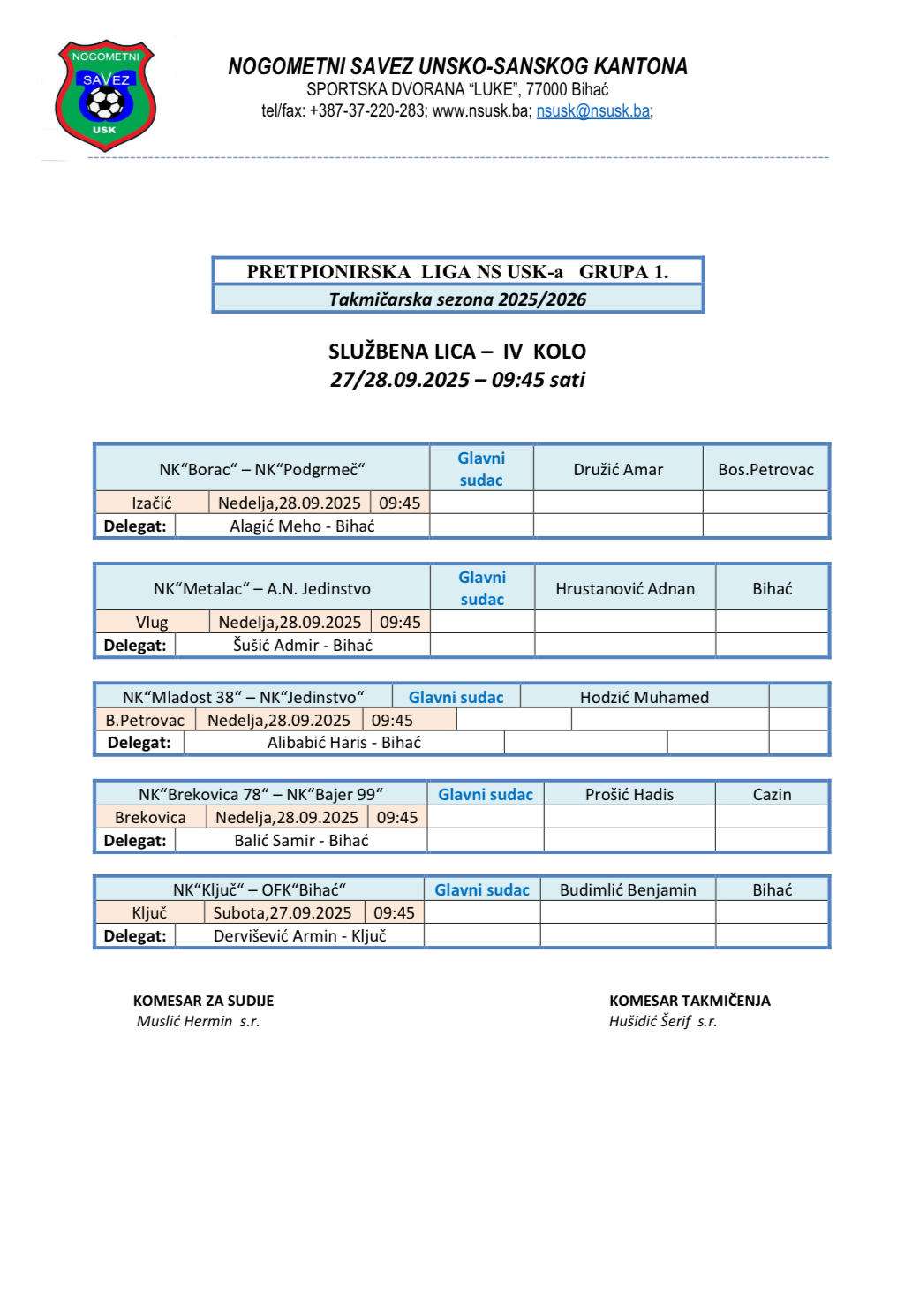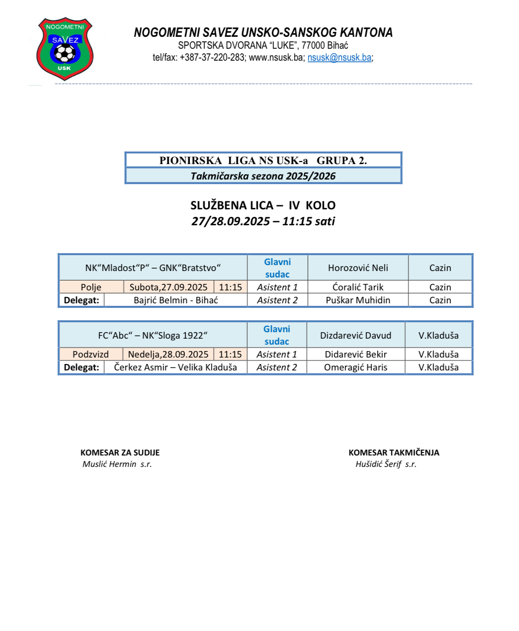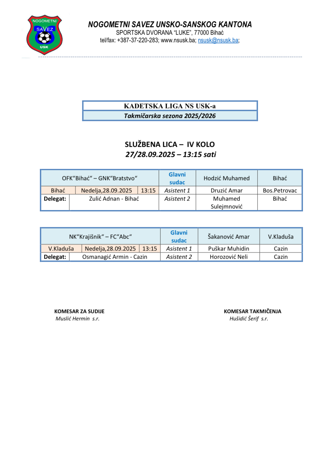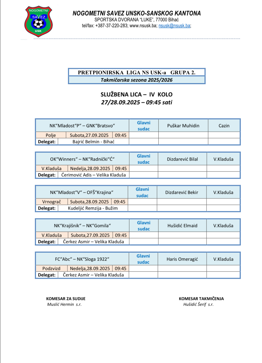 Delegiranje 4.kolo Kantonalna i Omladinska liga