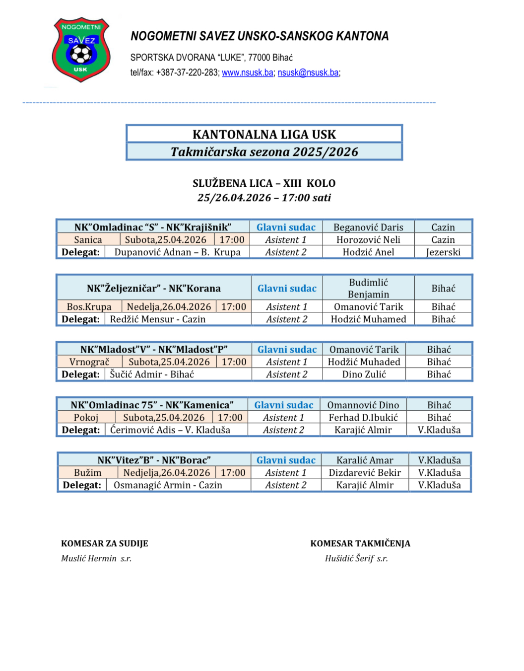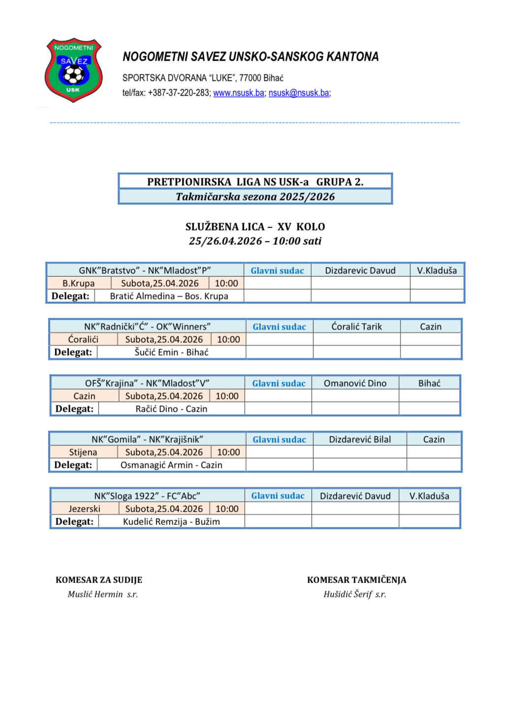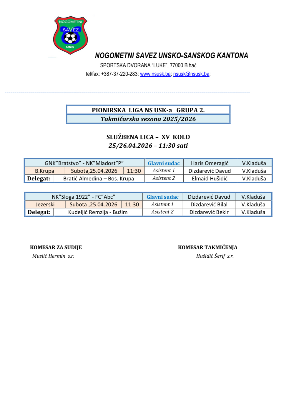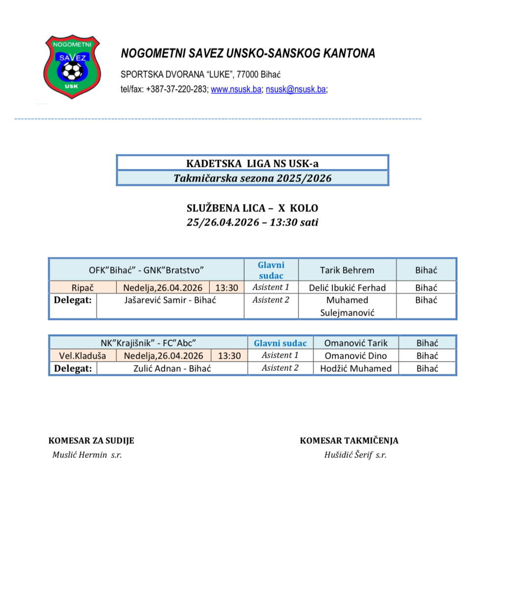 © 2026 Nogometni savez USK. All Rights Reserved