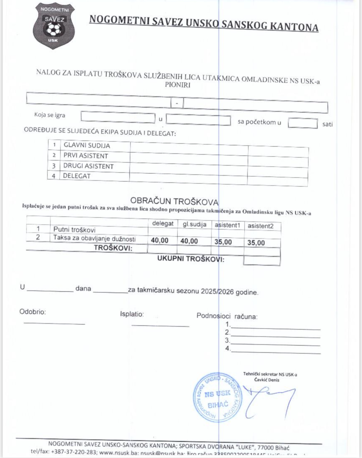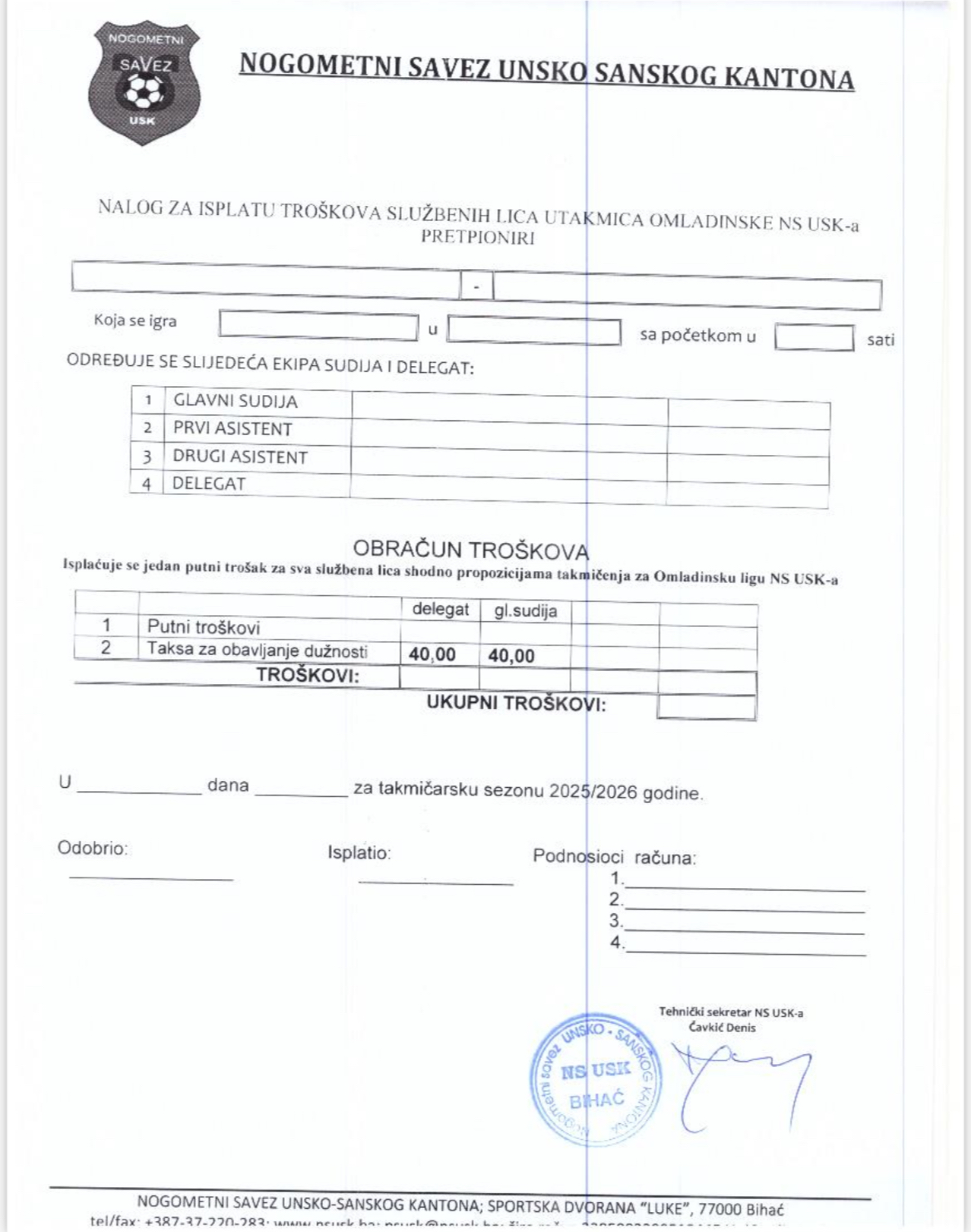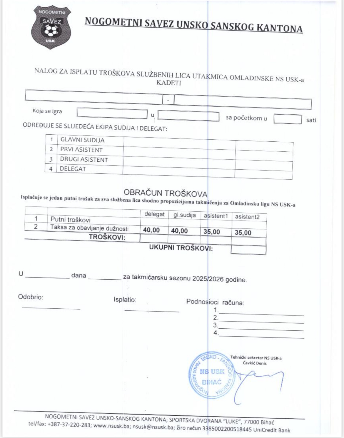 Nalozi službenih lica Kantonalna i Omladinska liga 2025/2026