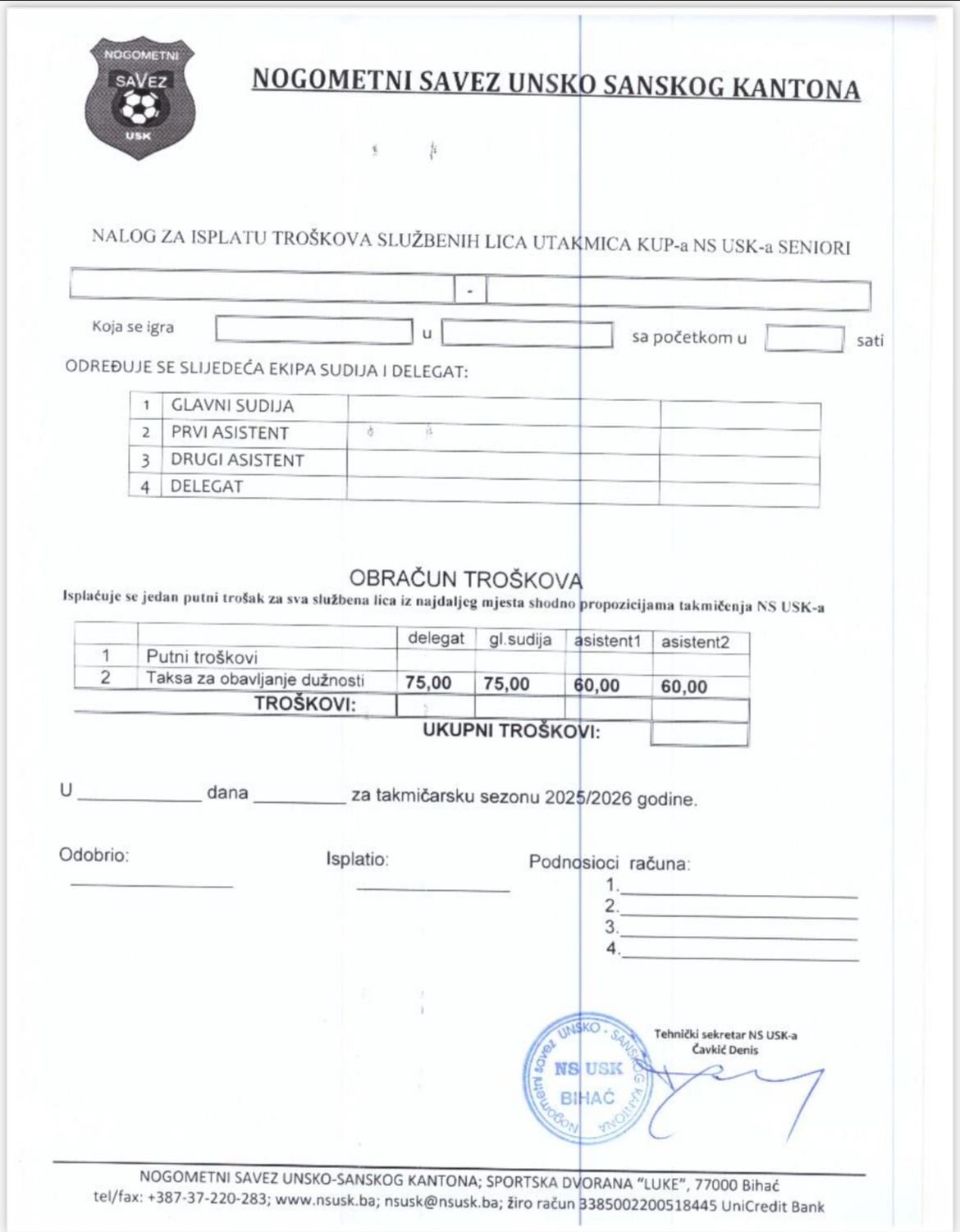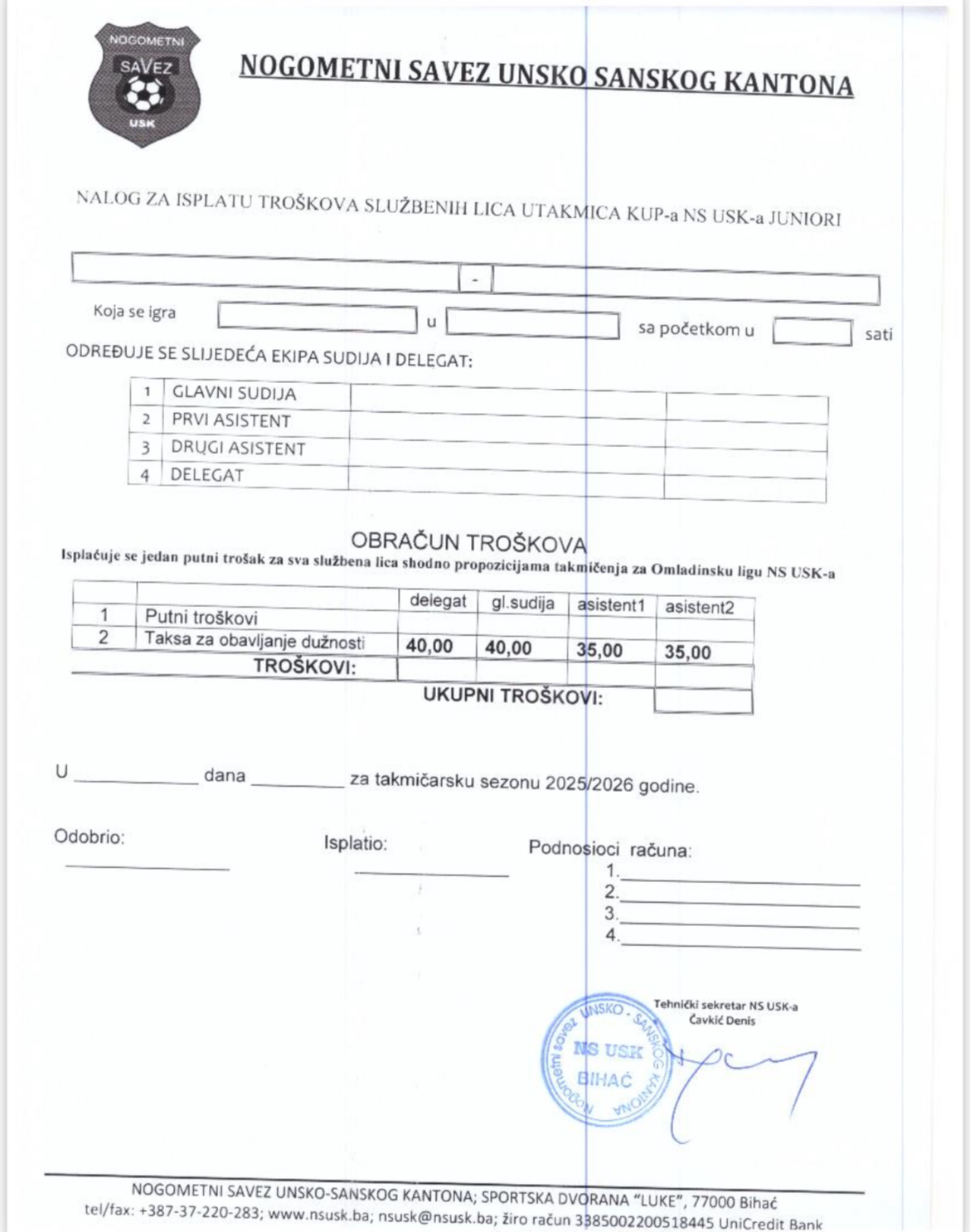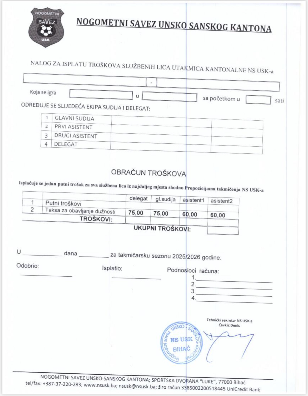 Nalozi službenih lica Kantonalna i Omladinska liga 2025/2026
